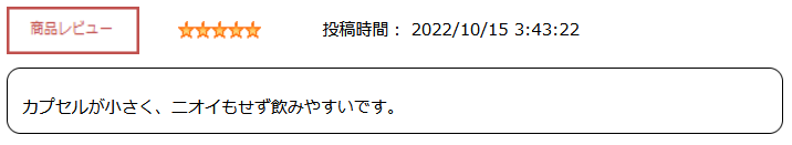 カプセルが小さく、ニオイもせず飲みやすいです。