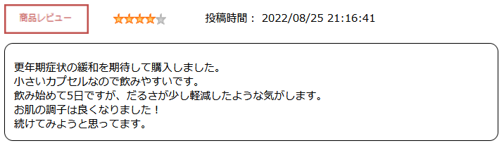 小さいカプセルなので飲みやすいです。飲み始めて5日ですが、だるさが少し軽減したような気がします。