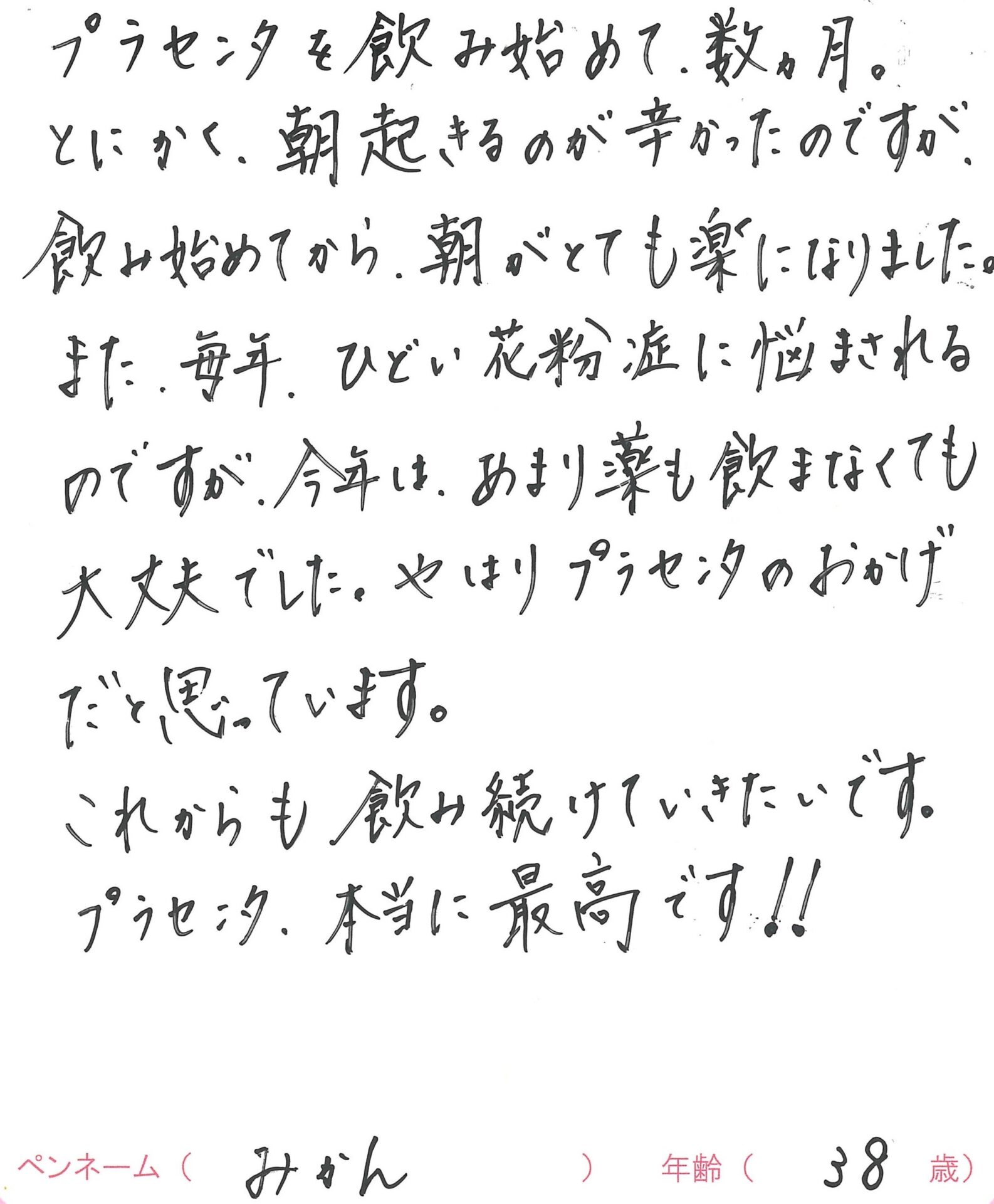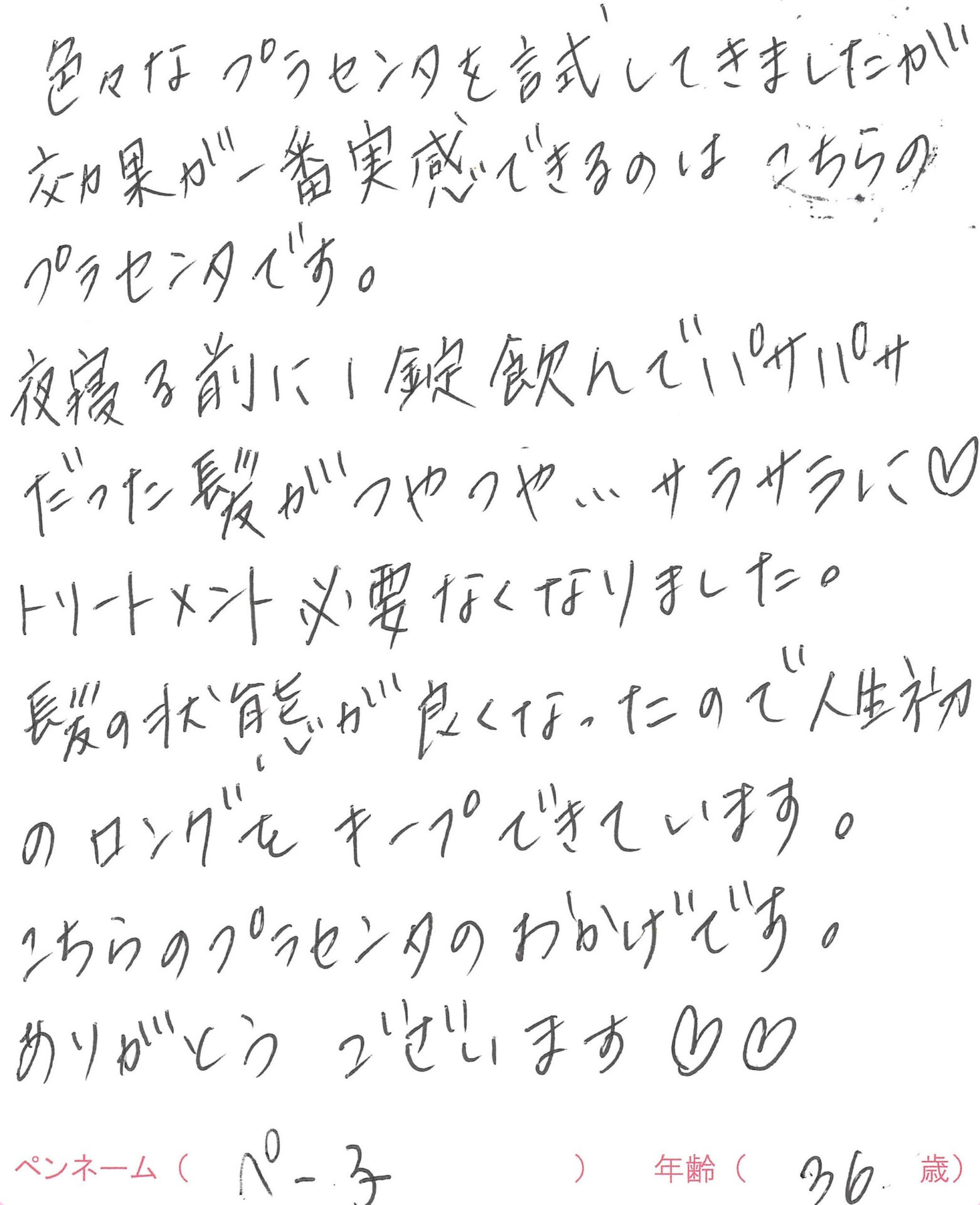 プラセンタサプリメントを飲んでいるお客様のお声を紹介します。