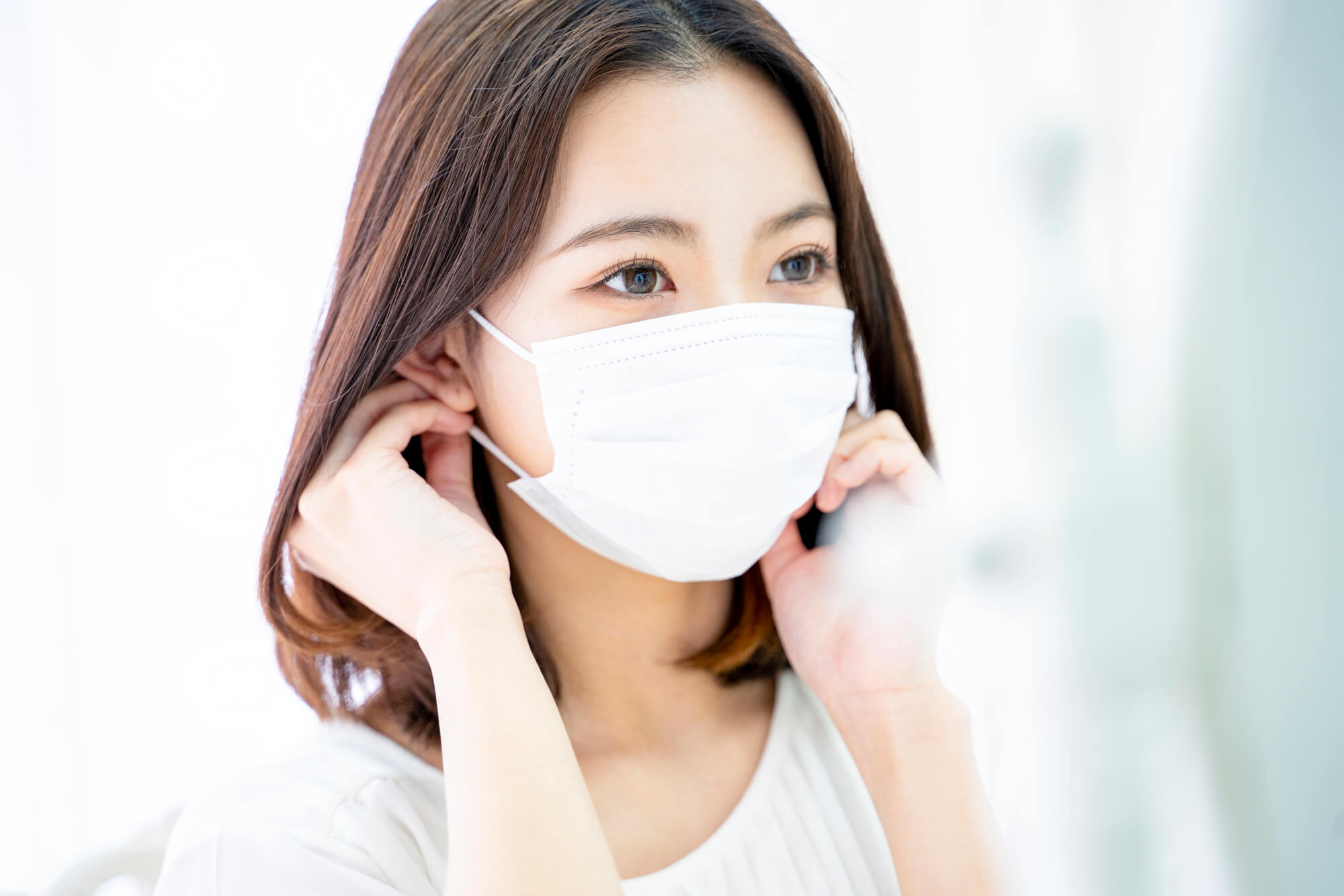 マスクの着用で花粉が肌に直接触れるのを防ぎます。外出時にはなるべくマスクを着用しましょう。