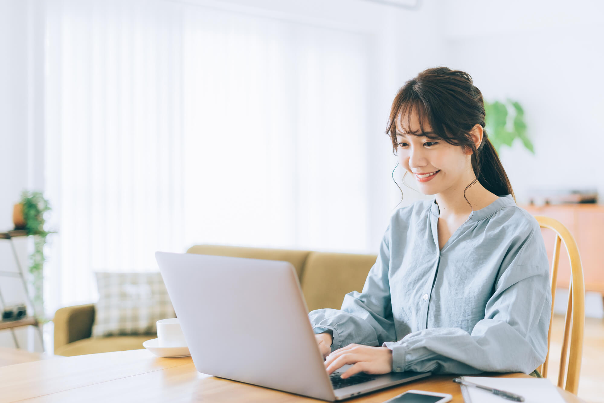 スマホを見る際も姿勢に注意が必要です。下向きにならず、スマホはやや上に上げてみるようにするのも、たるみ予防に役立ちます。