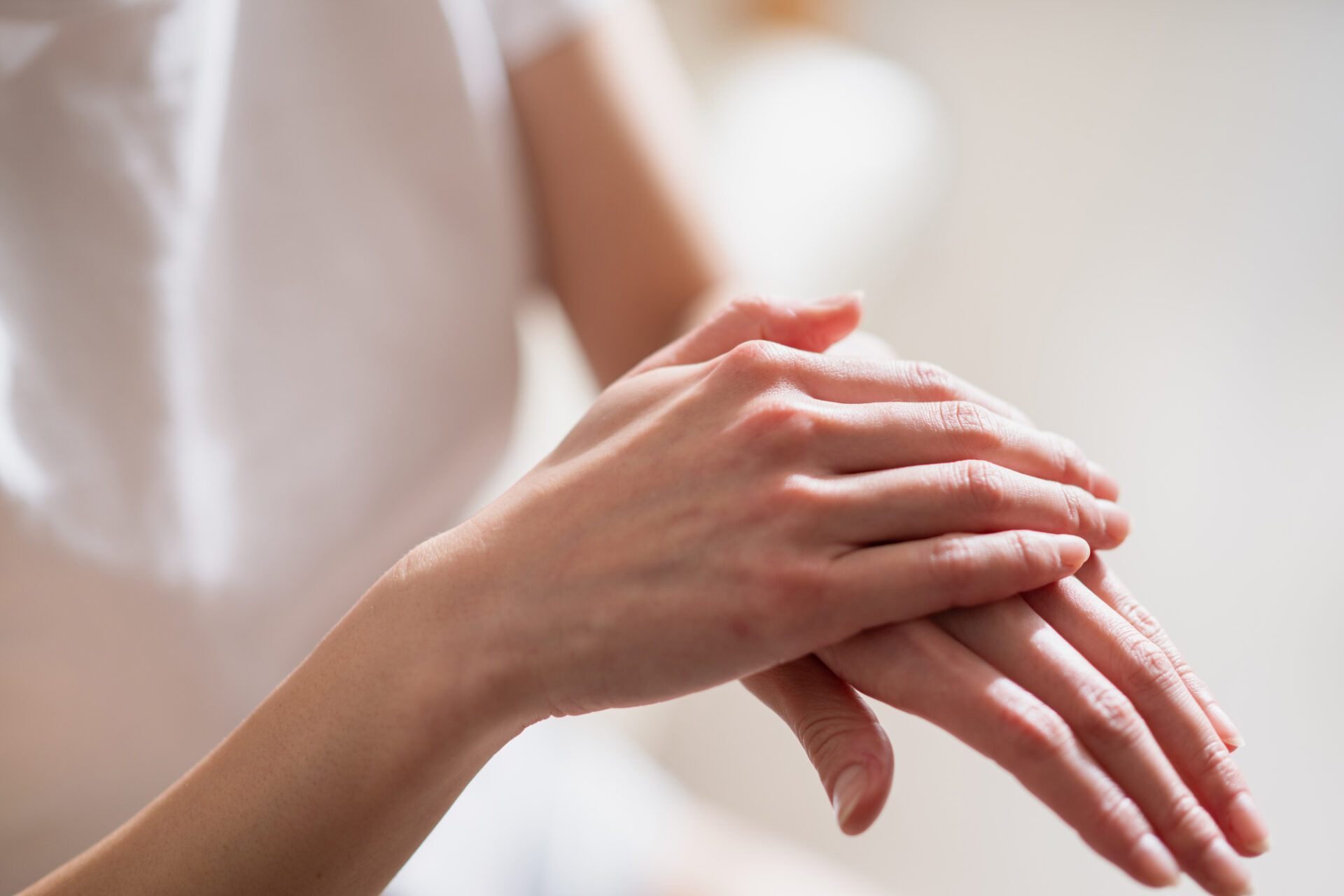 右手の親指の関節が「ばね指」になり、手術を受けることになったんです。他の指にも痛みや違和感を覚え、予防策を調べているうちに、エクオールという成分に辿り着きました。そして、日本人女性の約半数は体内でエクオールを作れないと知り、自分も該当するかも…と。