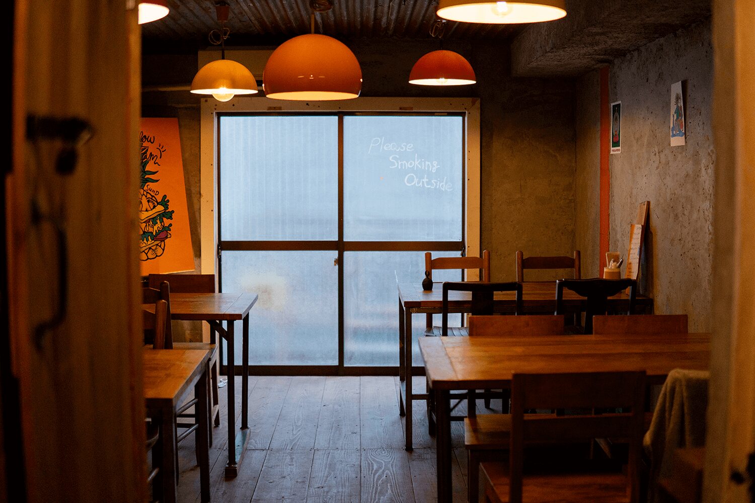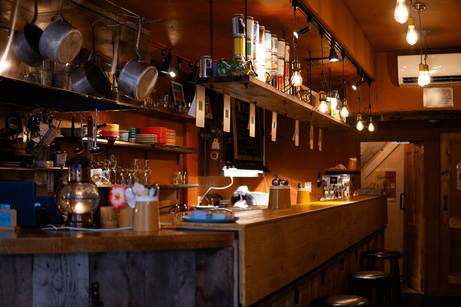 1階はサクッと立ち寄れるカウンター席、2階は隠れ家のように落ち着いたテーブル席。