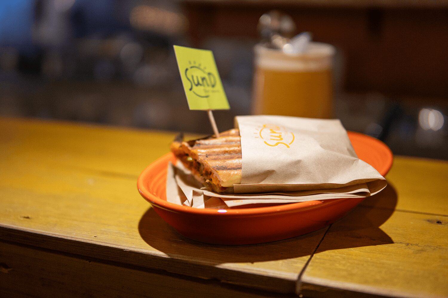 『SunD』の看板メニューのひとつが、14時間かけてスモークした牛肉を使った「ブリスケットサンド」。