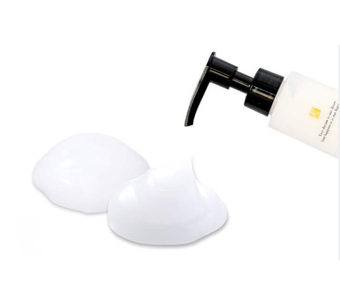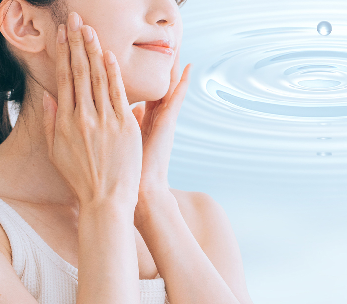 STEP2 両手のひら全体にこすらず広げ、 顔の下から上へ全体を包むようにやさしくなじませます。