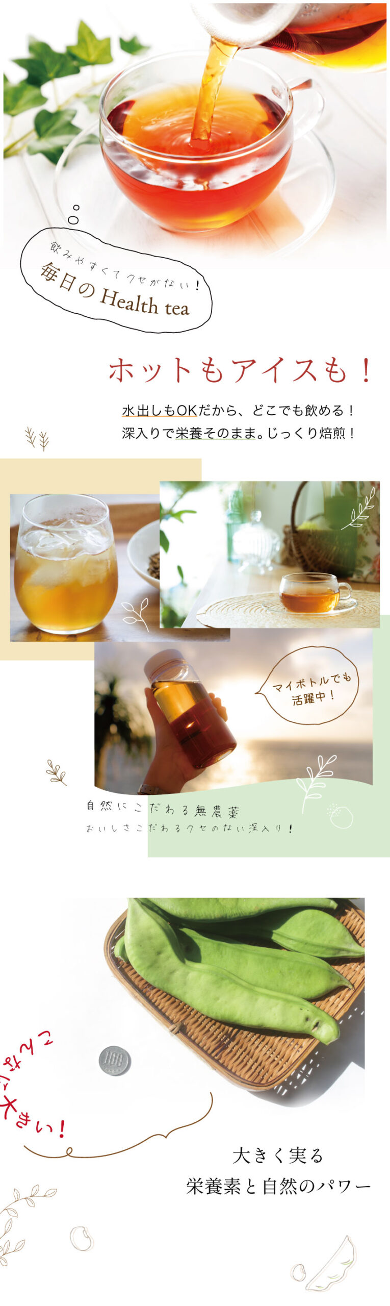 カラダめぐり茶で毎日スッキリ!無農薬栽培された国産白なた豆100%で美味しく安心安全なお茶です。