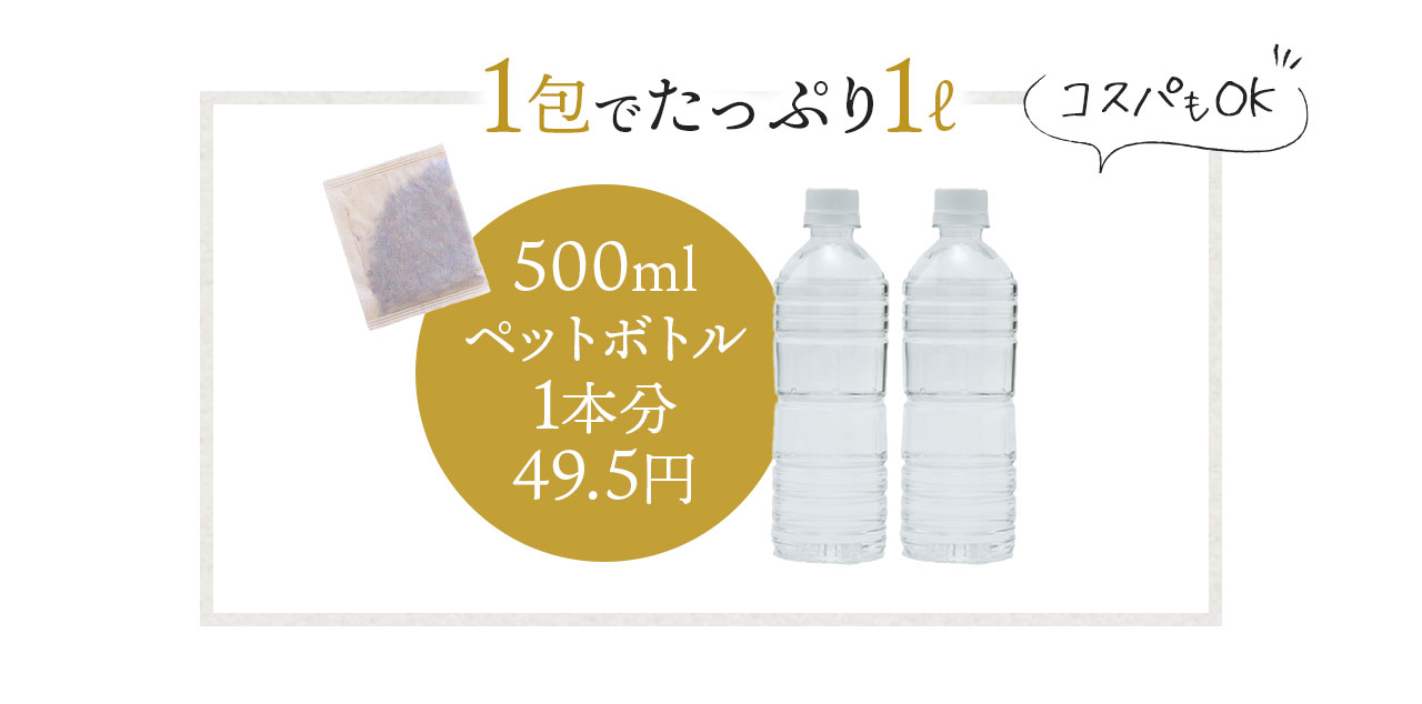 1リットルの水を目安にやかんで沸騰させます。沸騰したお湯にティーパックを1包入れ、3~5分煮だして出来上がりです。※水の量はお好みでお召し上がりください。アイスでもホットでも美味しくお召し上がりいただけます。